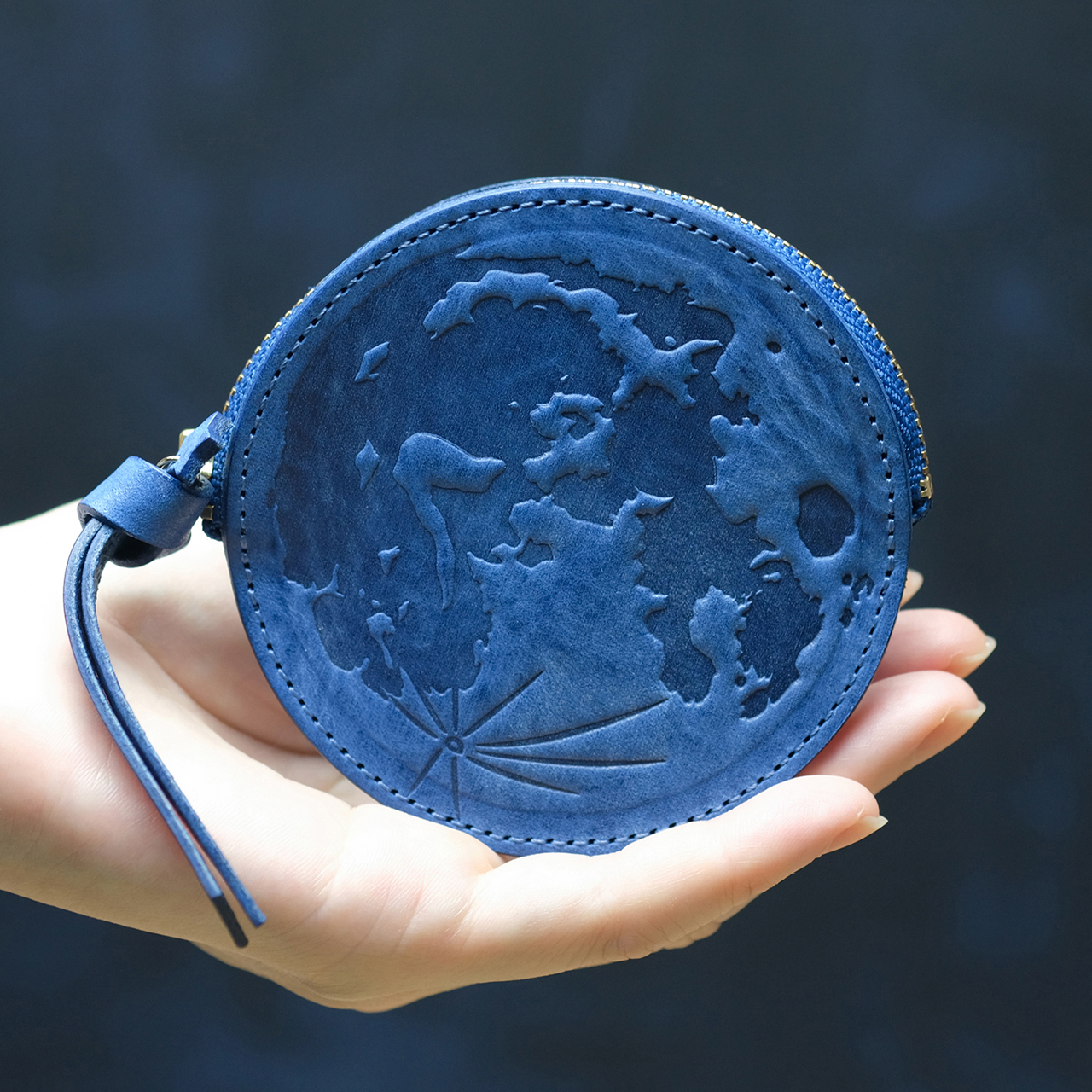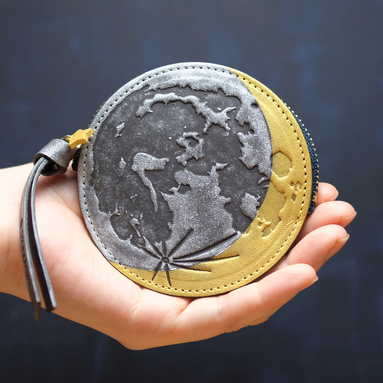 夜空に浮かぶ月をモチーフにした、まるいフォルムの本革コインケース。